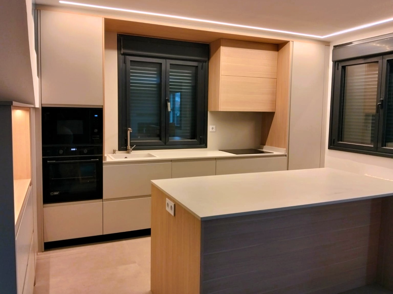 Diseño de cocinas con puertas rectas, con forma, en brillo, en mate o natural, con tirador o sin...