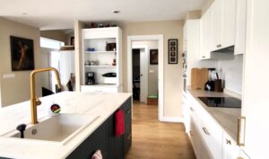 En este proyecto de Casabó Interiorismo, el objetivo era crear una cocina abierta elegante y funcional, manteniendo una estética clásica pero con materiales y soluciones contemporáneas.